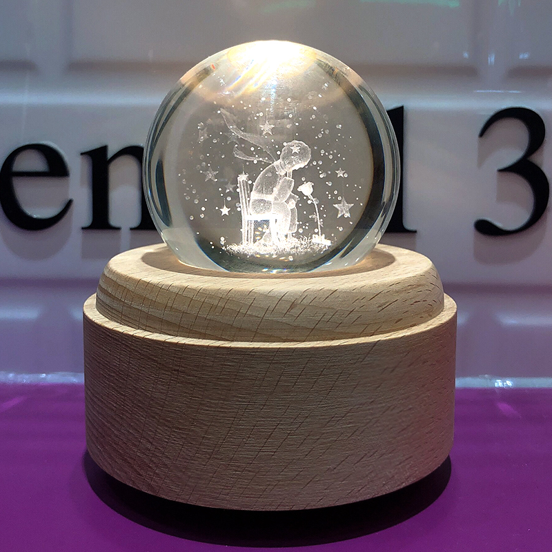 ジェアンカド小王子发光水晶球オルゴルゴ-ル回转射影小夜灯送女友达カード诞生日214バレンドレン王子(音乐出会の)