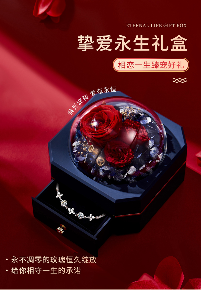 永生の花に注目して長くなりました。本物そっくりの色と精巧な組み合わせで、アクセサリーのギフトボックスを作ります。一番いい効果が現れます。数百元の造り出した小確幸さんはネックレスとブレスレットの細工がとても精巧で、証明書も全部そろっています。ハイエンドの大気の上の等級もよく分かりました。大好きです