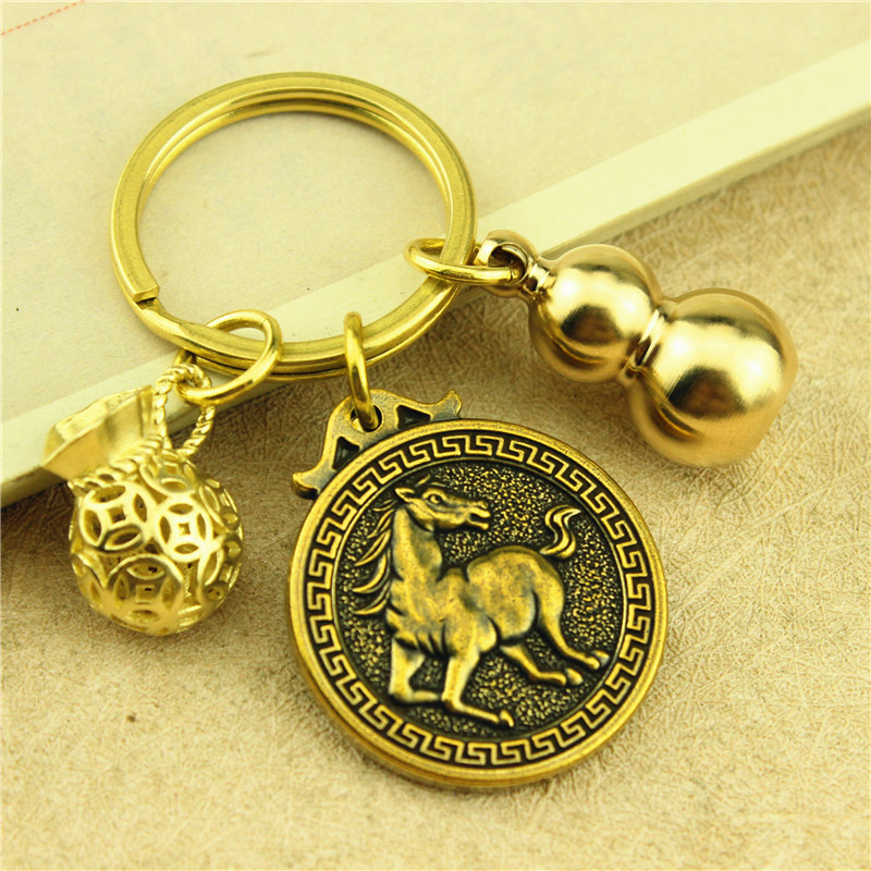 真鍮瓢箪の鍵はペダンの純銅の金袋の自動車の鍵を掛けて一葉の生財を飾っています。クラエエテの干支のペンダトのお金袋+心の小さご