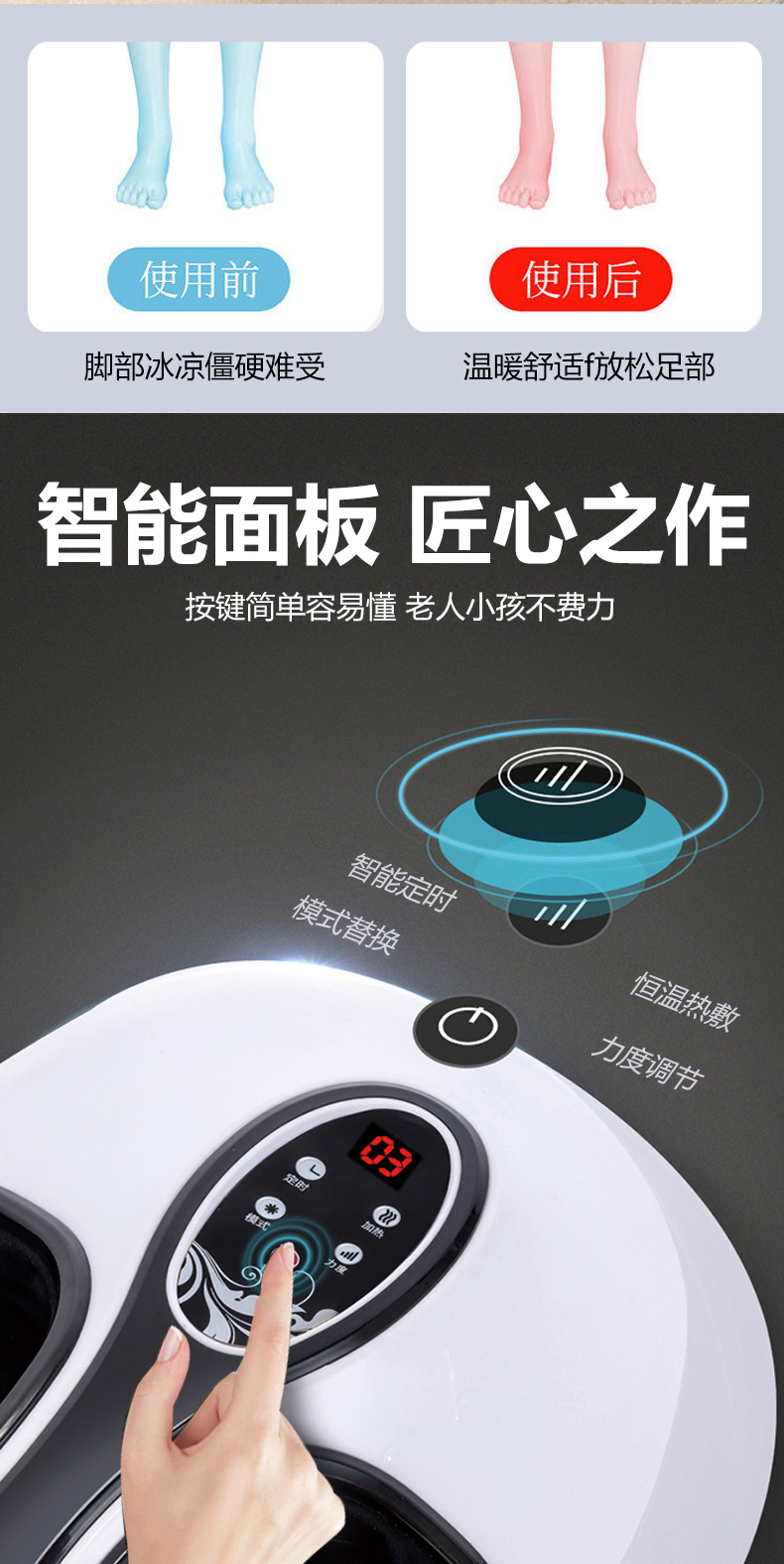 设计新颖,制作精良,功能强大,携带方便等特点,脚底按摩很到位,很舒服,保温功能好,大大的延长了泡脚时间,养生保健之佳品,适用于各种人群,物美价廉,值得拥有